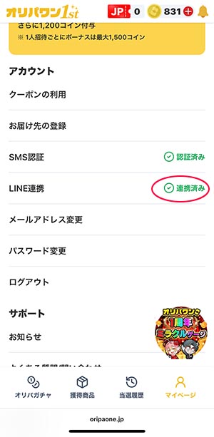 ・オリパワンに登録時、招待コード利用、コイン購入で300コイン獲得 | ||
