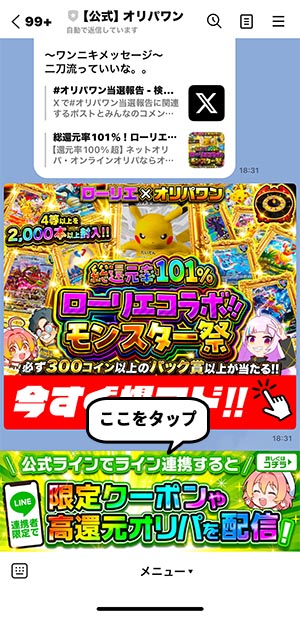 はい、初回のみです。その後のLINE案内はお得なオリパ紹介となります。
