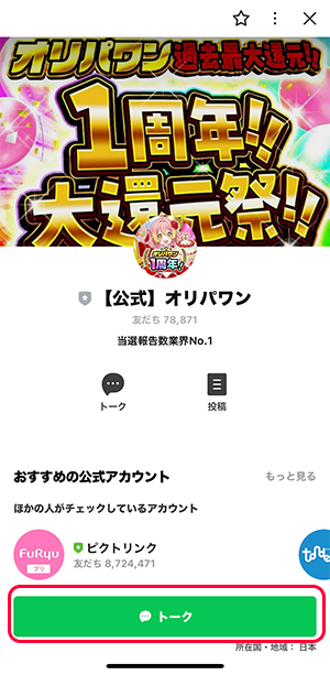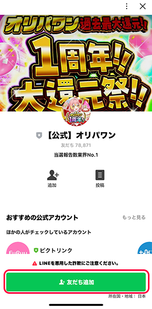 オリパワンのLINE友だち追加、LINE連携で初回限定クーポンを獲得できます。