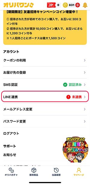 オリパワンに招待されたり、招待したりする時に利用することで、お得にコインが獲得できます。