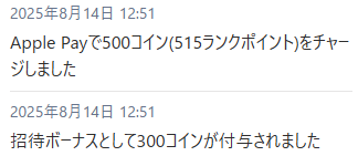 以降は初回課金で300コイン付与、累計10,000コインで1,500コイン付与となります。