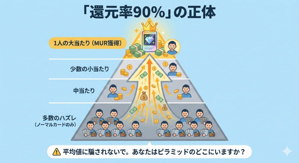 還元率90%なら、運営は90万円分のカードを排出します。しかし、その内訳はどうでしょうか?