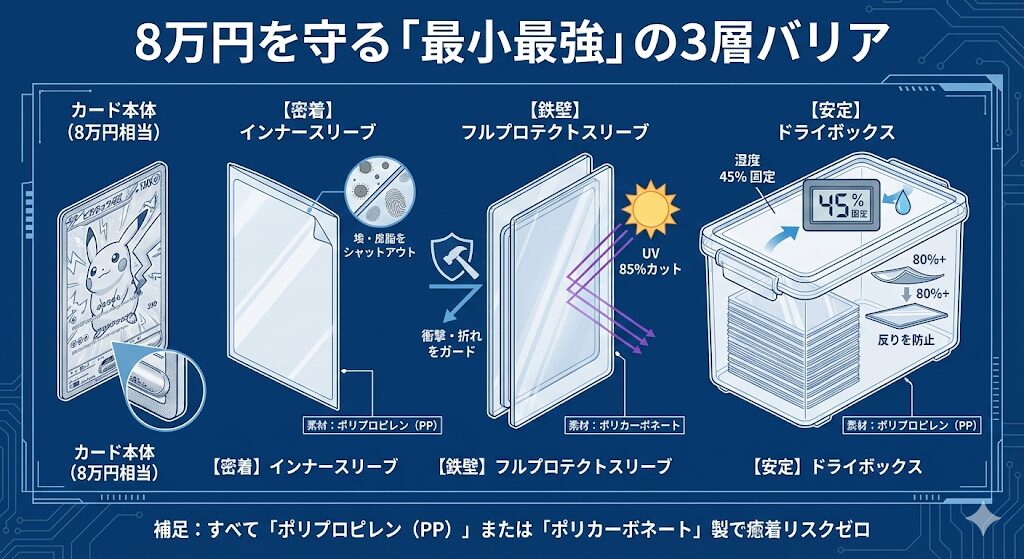 まずは今日、「フルプロテクトスリーブ」と「インナースリーブ」を揃えることから始めてください。 8万円の輝きを守り抜くのは、他でもない、持ち主であるあなた自身の決断です。