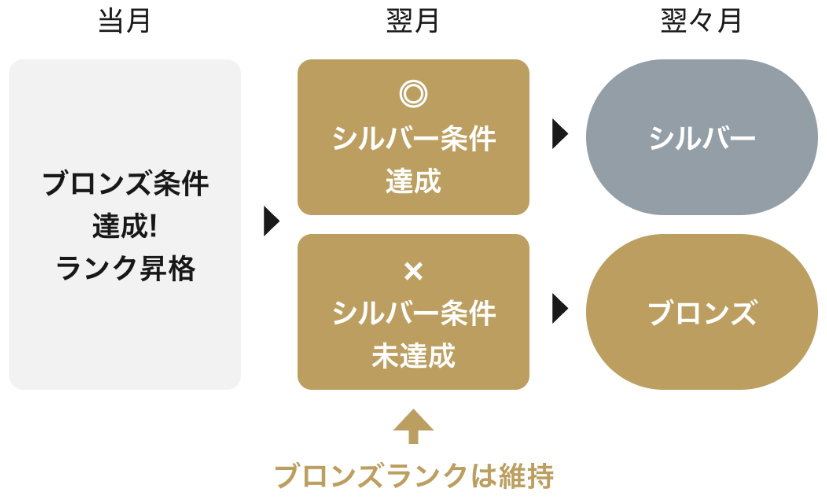 2月にランクアップ条件を満たさなかった場合でも、3月はブロンズランクのままとなります。