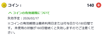 日本トレカセンターでは通常のコインの有効期限は6ヶ月(180日)です。