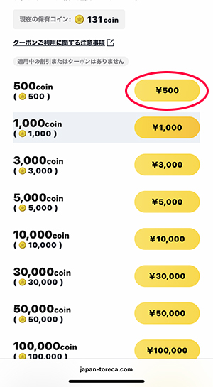1)発送は”1,000coin以上”が必要なので、今回は”1枚(合計10coin)をコインに還元する”をタップします。