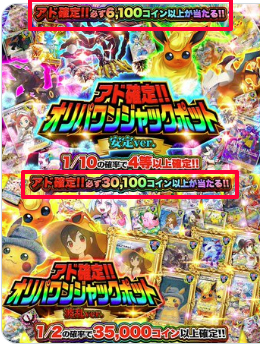 一部を除きジャックポットガチャは消費したコイン数以上が必ずもどってくるアド確定のガチャという点です。