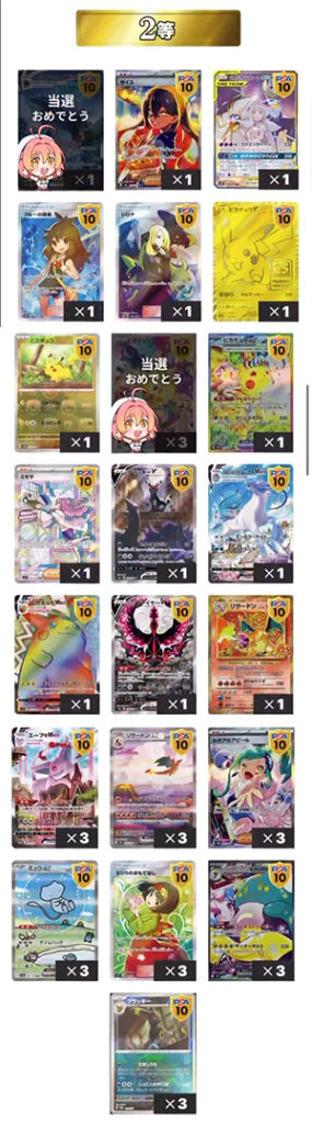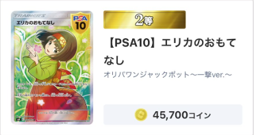 2等はPSA10 カイリューSR(買取価格:約35,000円 2025.10時点)、PSA10 エリカのおもてなしSR(買取価格:約20,000円 2025.10時点)となっています。