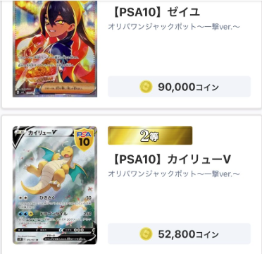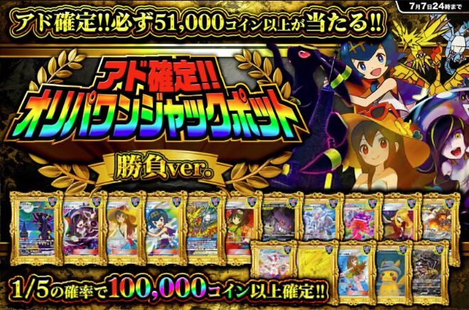 1/5の確率で100,000コイン以上が確定のオリパです。
